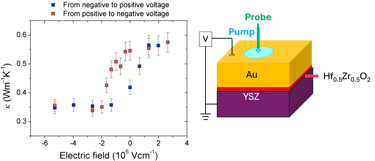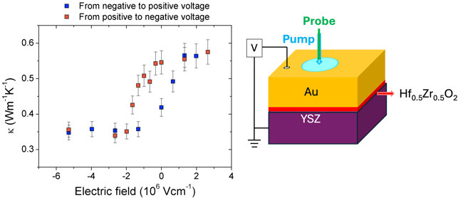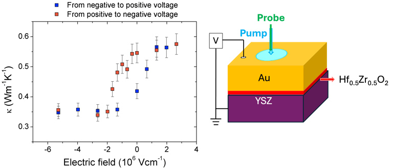 The coupling of polarization and oxygen vacancy migration in ferroelectric Hf0.5Zr0.5O2 thin films enables electrically controlled thermal memories above room temperature.
